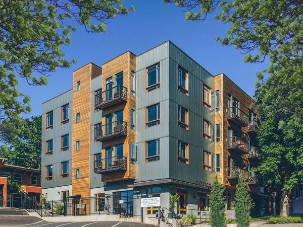 Each unit comes with quartz countertops. wood floors, energy-efficient stainless-steel appliances, a fireplace and in-unit washer/dryer.