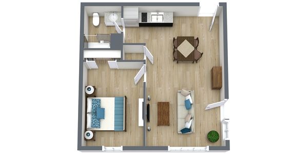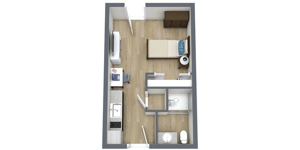 Offers a cozy and efficient living space, perfect for singles or couples. With an open floor plan and modern finishes, these units provide everything you need to live comfortably in a compact space.